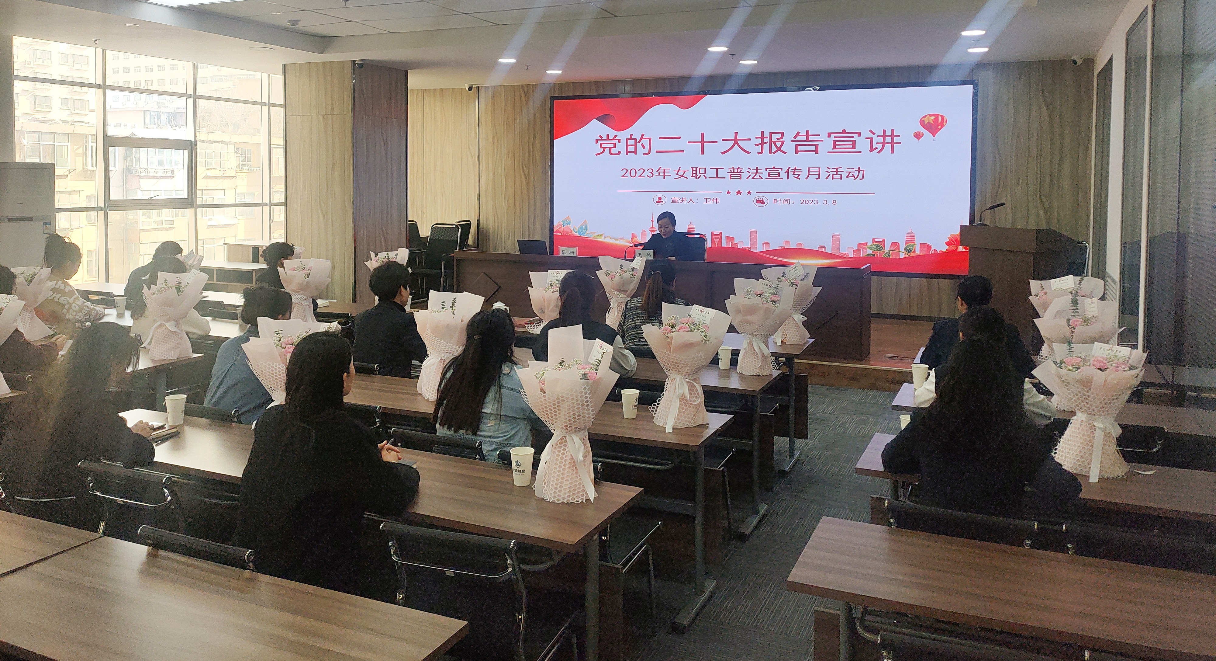 活動(dòng)中,培訓(xùn)中心工會(huì)主席、總經(jīng)理衛(wèi)偉帶領(lǐng)全體女職工學(xué)習(xí)黨的二十大精神,同時(shí)宣傳了《中華人民共和國婦女權(quán)益保障法》,衛(wèi)偉代表公司領(lǐng)導(dǎo)班子和工會(huì)向全體女職工致以節(jié)日的問候和美好的祝福。 愿你像女神一樣優(yōu)雅 像花兒一樣美麗 在這個(gè)特別的節(jié)日里 愿你像女神一樣充滿智慧和力量 像女王一樣堅(jiān)定和自信