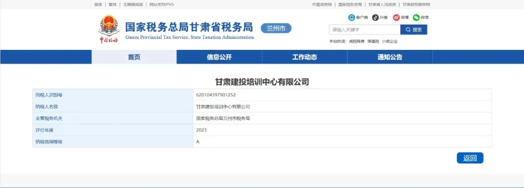 近日,國家稅務(wù)總局甘肅電子稅務(wù)局公布了2023年度企業(yè)納稅信用評級結(jié)果,甘肅建投培訓(xùn)中心有限公司被評為“納稅信用等級A級納稅人”。至此,培訓(xùn)中心已連續(xù)第五年獲此殊榮。