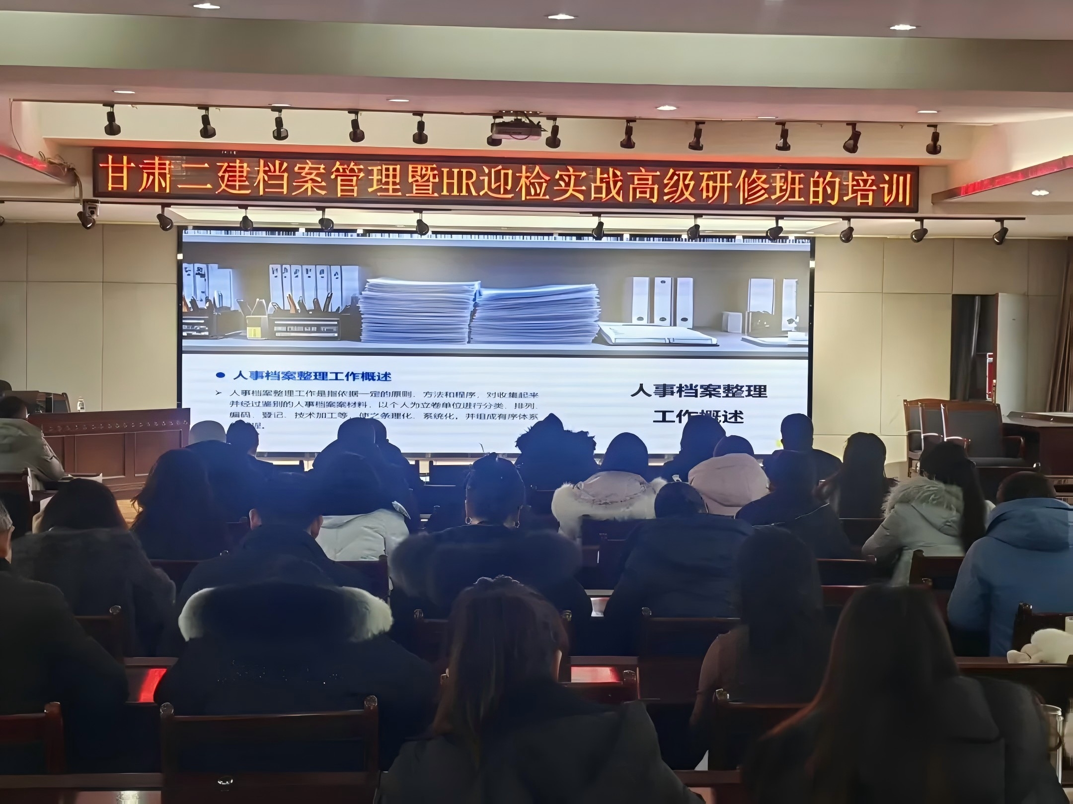 為提升人事檔案管理規(guī)范化水平,強(qiáng)化HR迎檢實(shí)戰(zhàn)能力,筑牢人力資源管理合規(guī)防線,1月17日,由甘肅第二建設(shè)集團(tuán)有限責(zé)任公司主辦,甘肅建投培訓(xùn)中心有限公司承辦的檔案管理暨HR迎檢實(shí)戰(zhàn)高級研修班在甘肅二建多媒體培訓(xùn)教室成功舉辦。來自甘肅二建人力資源部全員及各分(子)公司勞資人員共計(jì)60人參加為期一天的高強(qiáng)度實(shí)戰(zhàn)化培訓(xùn)。