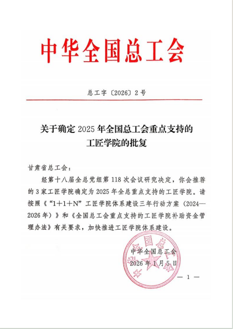 近日,從中華全國總工會傳來喜訊,甘肅建投培訓中心有限公司憑借扎實的基礎建設與顯著的育人成效,成功獲批為“2025年全國總工會重點支持的工匠學院”。據(jù)悉,此次評選中,甘肅省僅有三家單位獲此殊榮。