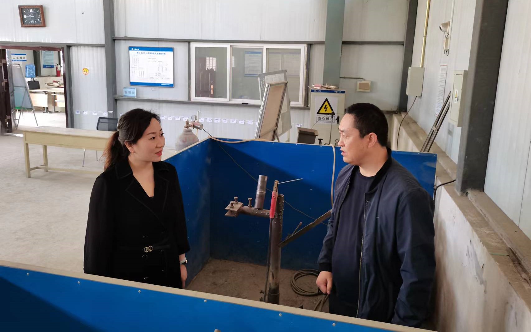 調(diào)研中,衛(wèi)偉聽取了公司相關(guān)事業(yè)部負(fù)責(zé)人對(duì)實(shí)訓(xùn)基地教學(xué)機(jī)械設(shè)備運(yùn)行、定期保養(yǎng)檢測、場地布局規(guī)劃、日常管理等情況進(jìn)行匯報(bào)。