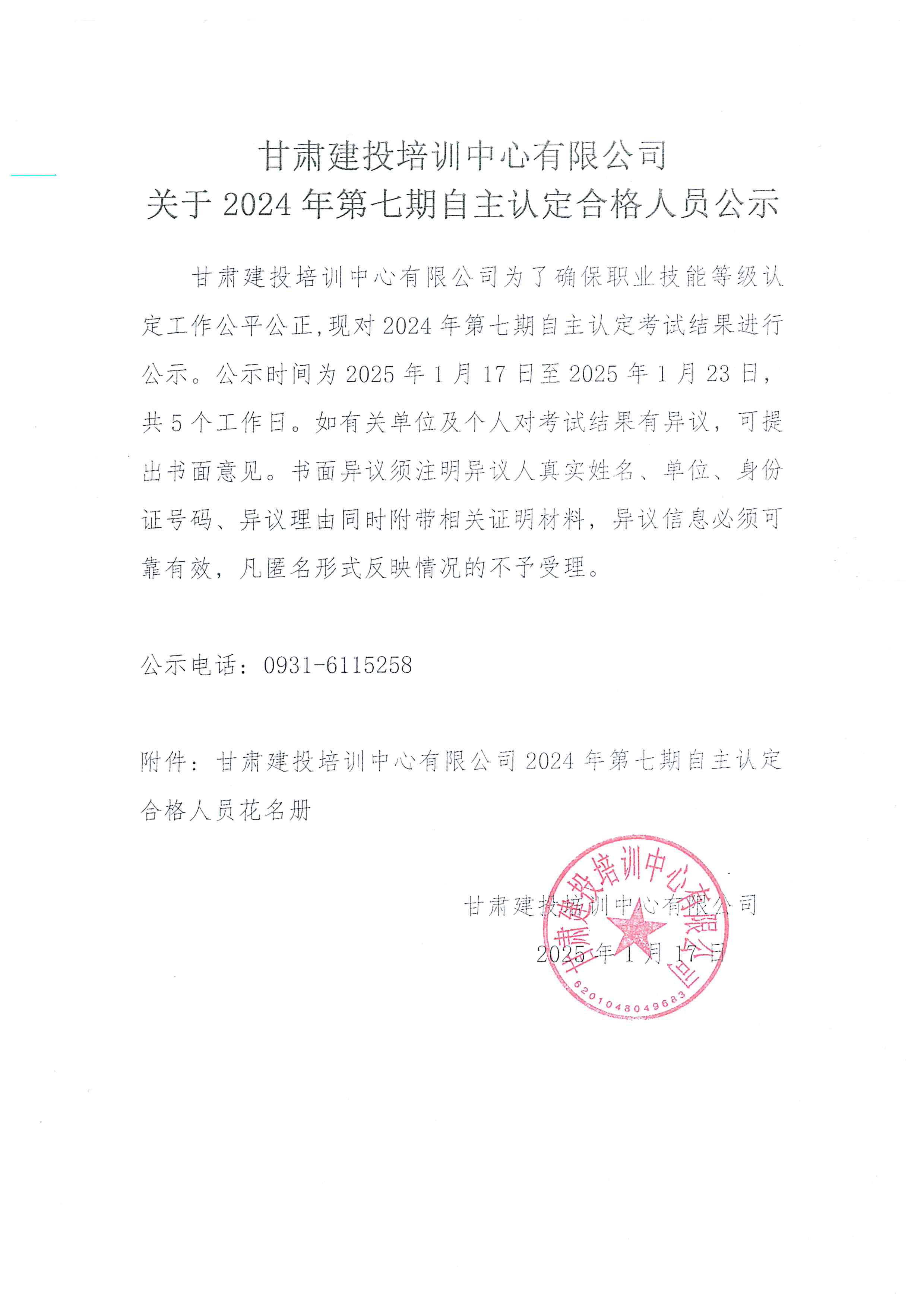 甘肅建投培訓(xùn)中心有限公司 關(guān)于2024年第七期自主認(rèn)定合格人員公示